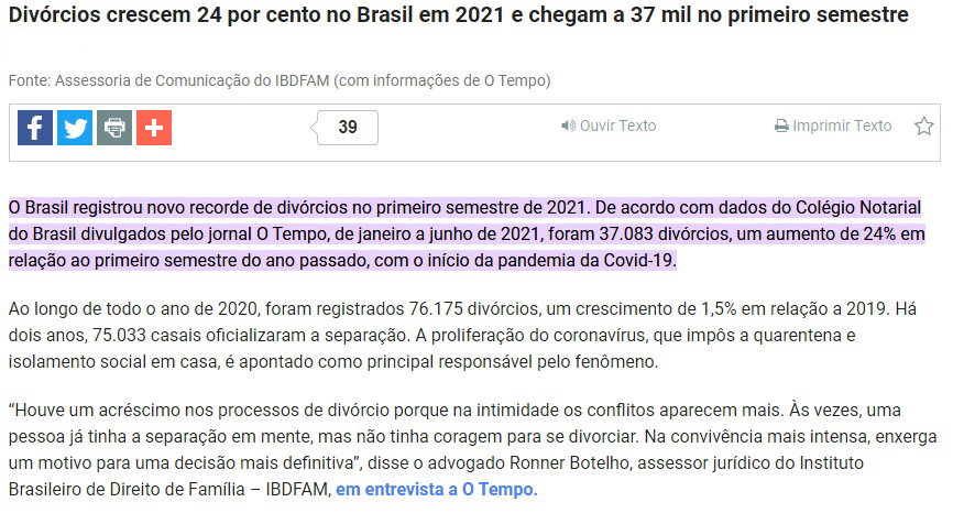 O que fala a Mídia sobre Divórcios!